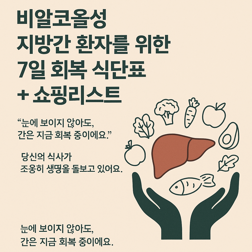 콘텐츠 개요 주제: 비알코올성 지방간 환자를 위한 회복 식단목표: 간지방 축소, 간수치 개선, 인슐린 저항성 완화구성:식단 설계 원칙7일 회복 식단표 (각 끼니 목적 + 구성 이유 포함)상세 쇼핑리스트 (보관팁 + 브랜드 제안 포함)식사 실천 루틴식사 중/후 피해야 할 식품 가이드간 수치 개선에 도움이 되는 실천 습관 1. 식단 설계 핵심 원칙요소 기준 이유탄수화물GI 55 이하 복합탄수화물혈당 안정 → 간 내 지방 축소단백질체중 1kg당 1.2~1.5g/day근육 보존 + 간세포 재생지방불포화지방 위주, 하루 20~30g 내외염증 억제 + 지방간 역전섬유질하루 25g 이상당 흡수 억제 + 인슐린 민감도 향상조리법굽기, 찌기, 삶기 위주튀김, 볶음 기름 사용 제한당류 제한설탕, 액상과당, 과일주스 완전 ..