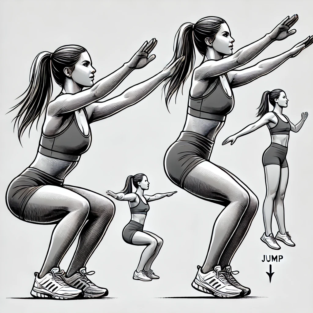 • 스쿼트 점프: 하체 근력 강화와 심폐 지구력 향상, 15회 X 3세트