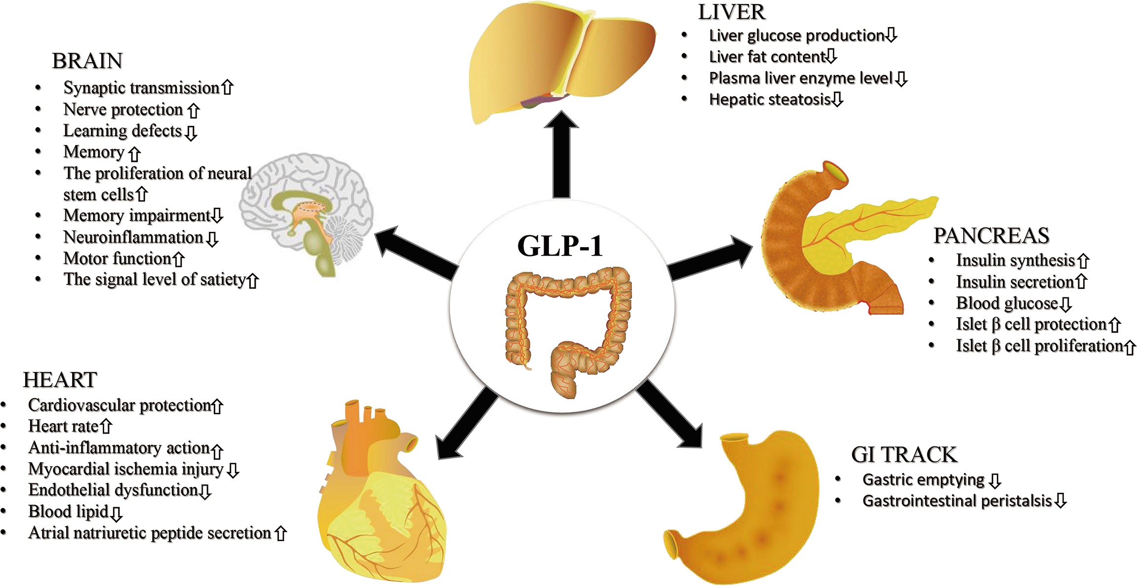 GLP-1은 'Glucagon-like Peptide-1'의 약자로, 인크레틴 호르몬의 일종입니다. 이 호르몬은 우리가 음식을 먹으면 소장에서 분비되어 췌장을 자극해 인슐린 분비를 증가시키고, 글루카곤 분비를 억제하는 역할을 합니다. 결과적으로 혈당을 낮추고, 위 배출 속도를 늦춰 포만감을 증가시키며 식욕을 억제하는 효과가 있습니다.