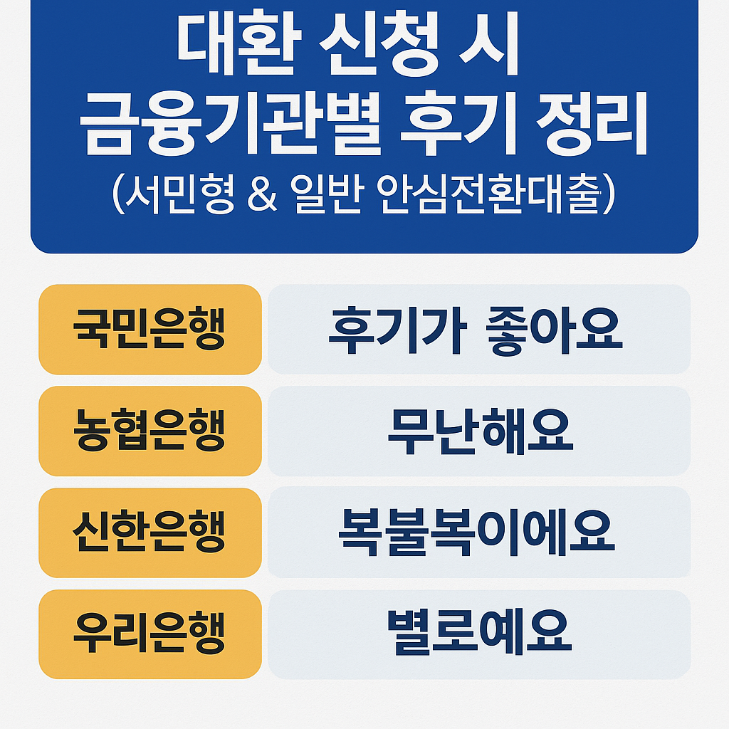 ✅ 금융기관별 대환 신청 후기 비교
