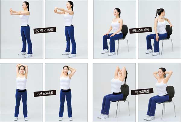 앉아서 1시간마다 일어나 어깨, 허리, 다리 스트레칭!