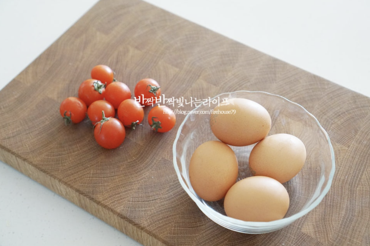 여기에 방울토마토 5~6알을 곁들이면 상큼함과 비타민 C를 동시에 챙길 수 있습니다. 계란의 고소함 + 토마토의 상큼함 조합은 입맛이 없을 때에도 딱입니다.