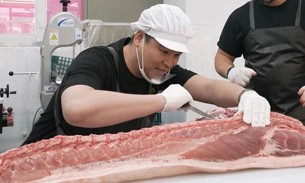 ‘정육 고수’의 시범에 감탄! 직접 해체 도전
