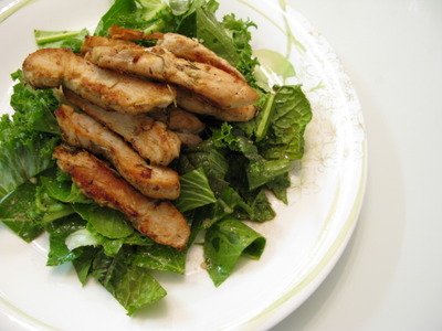2. 닭가슴살을 소금 & 허브로 간한 후, 팬에 노릇하게 굽기.