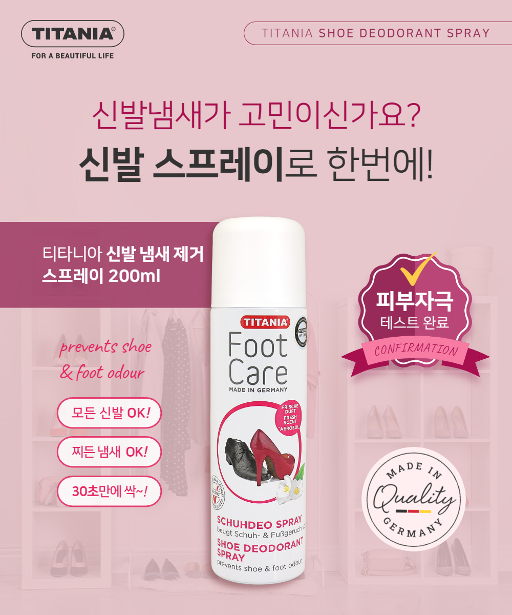 | 악취가 심한 신발에 효과 있나요? | 티타니아 스프레이 | 고농축 탈취 효과 있음 |