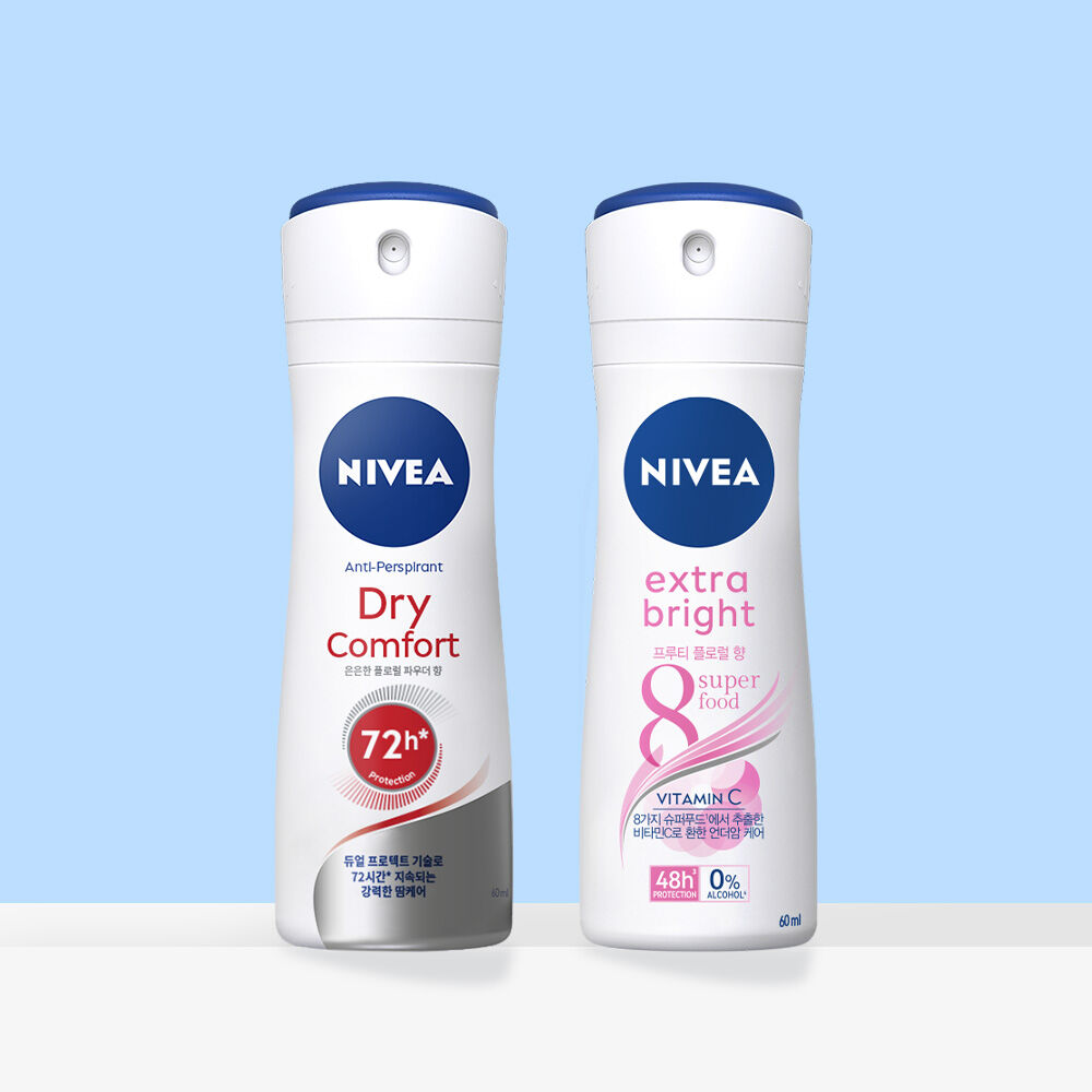- 스프레이형 니베아: 사용 간편+보송 마무리 → 하루 종일 쾌적.