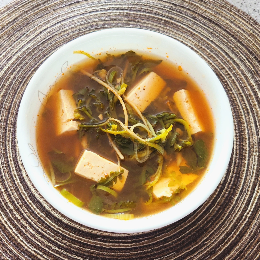 - 재료: 냉이 한 줌, 된장 1큰술, 두부, 멸치육수