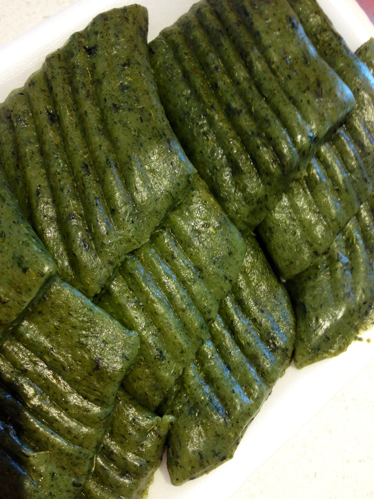- 반죽에 쑥을 섞어 동글납작하게 빚는다.