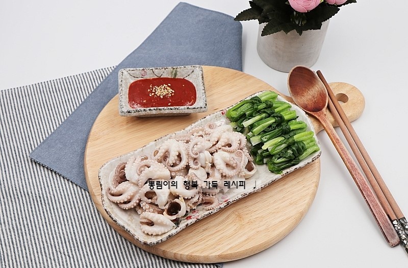 - 끓는 물에 식초를 조금 넣고 주꾸미를 1~2분 데친다.